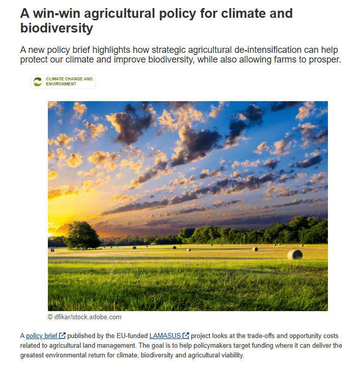 LAMASUS Policy Brief “Maximizing CAP Impact” highlighted by the European Commission